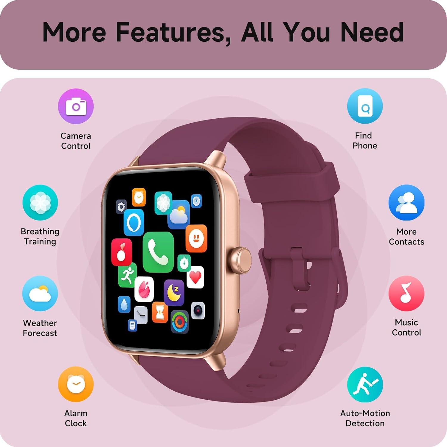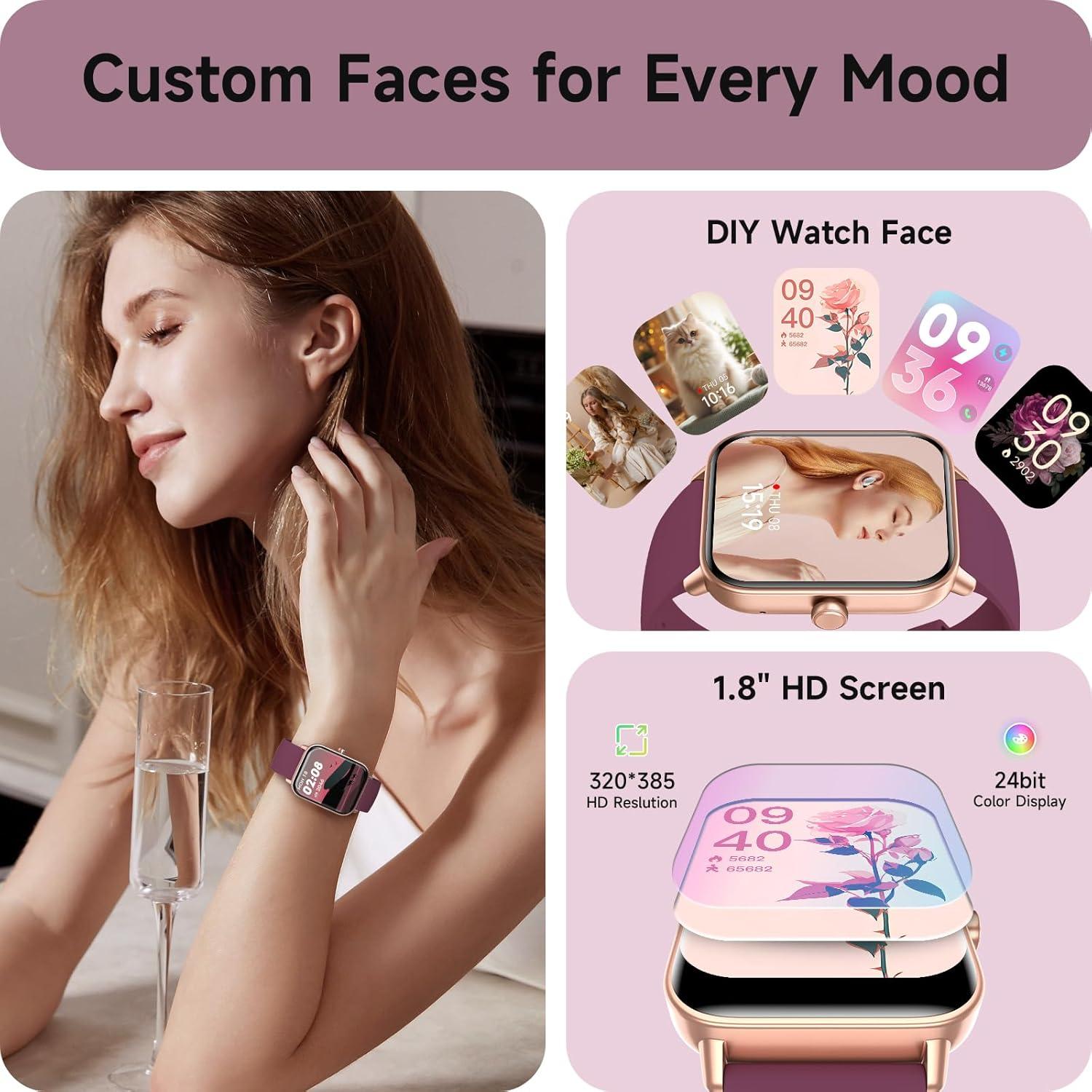 【1.8'' Full Touch HD Screen & 100 Dials】 Feature a 1.8'' full touch HD color screen, which can provide excellent picture quality, with 100 dials to choose from, and you can also select your favorite photo as a dial in the smart watches.