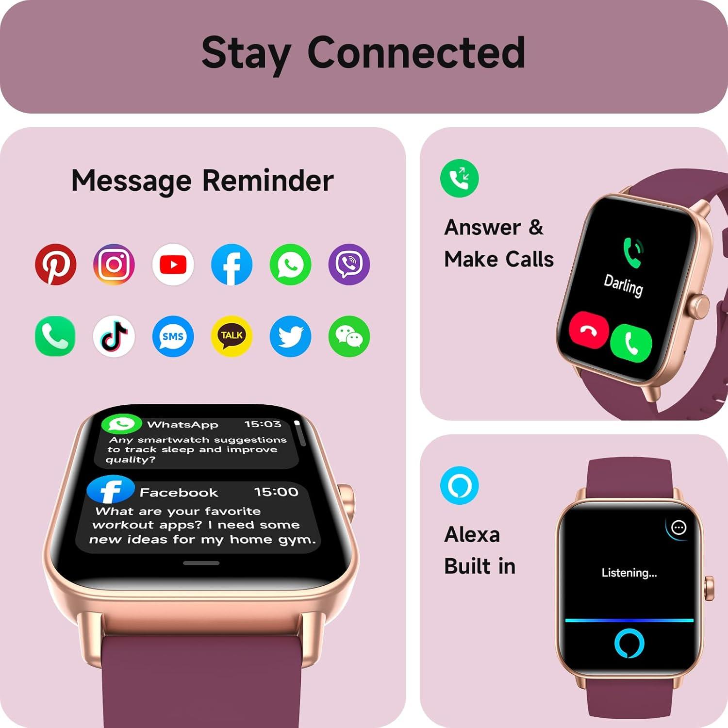aeac Smart Watch, Alexa Built-in, Stable Bluetooth Call, Fitness Tracker with Heart Rate/SpO2/Stress/Sleep Monitor, Smartwatches for Women 110+ Sports, IP68 Waterproof Smartwatches for iOS Android(Deep Purple)