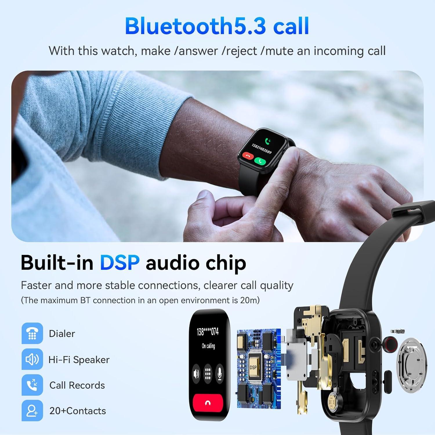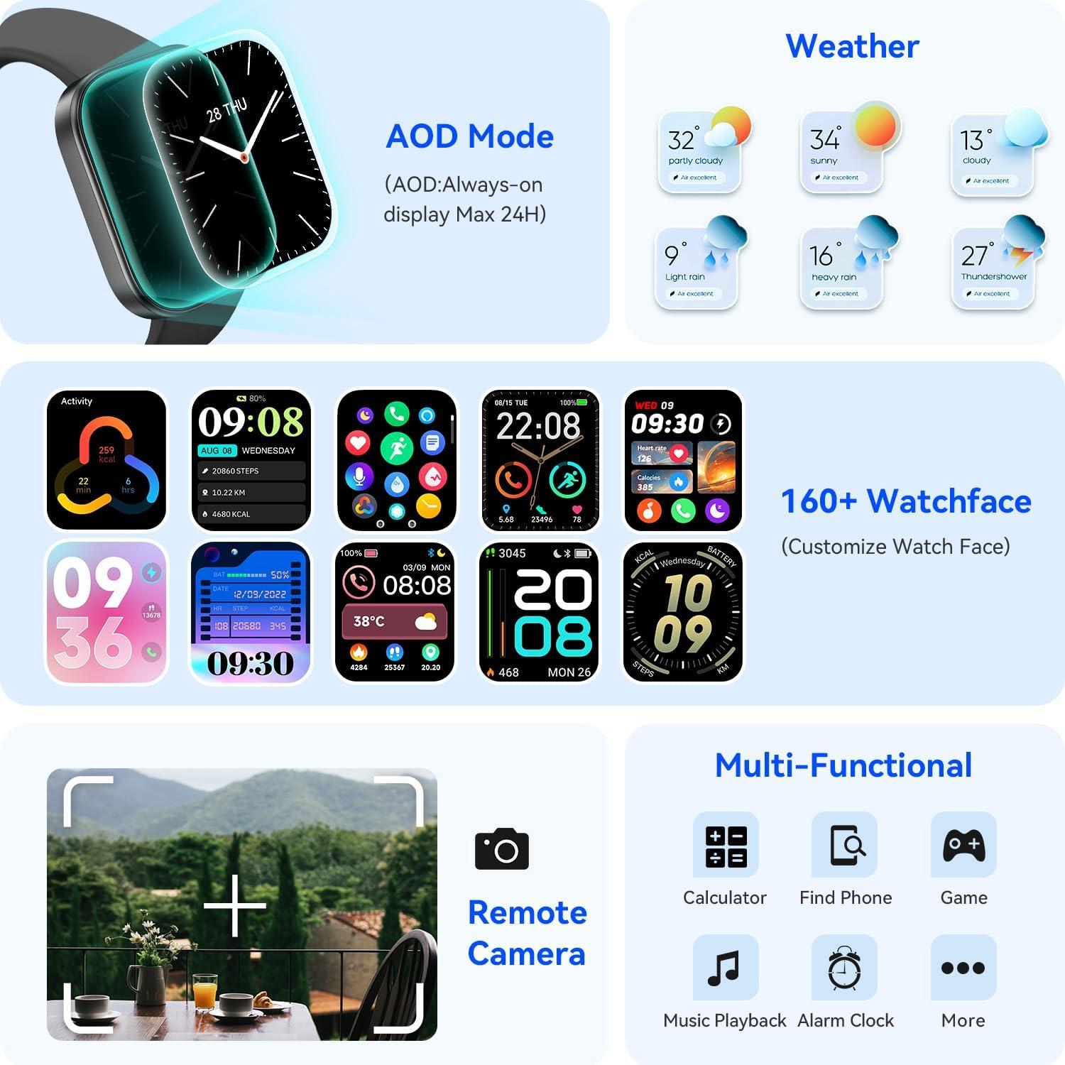 aeac Smart Watch for Men Women iPhone & Android,1.99" AMOLED Screen 3ATM Waterproof Fitness Watch with Answer/Make Call AI Voice,24H-Heart Rate/SpO2/BP Monitor,120+ Sports Modes (Black, 1.99)